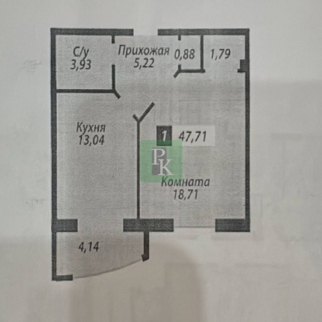 • Жилая площадь: 18,71 м²;