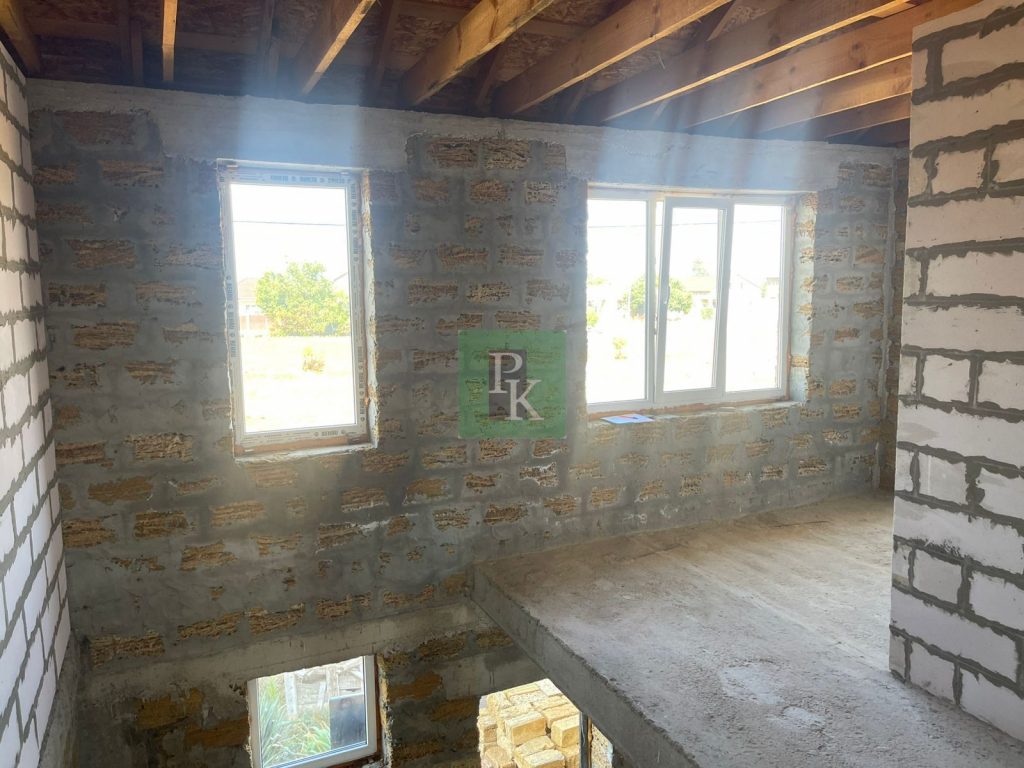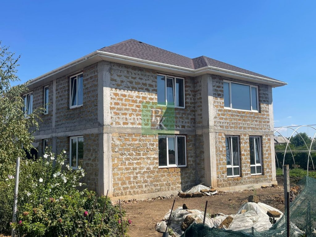 Дом построен из ракушки в камень, требуется отделка, строился под себя, 3 входа в дом, один с фасада, один из гаража и вход с огорода, окна REHAU, качественная гибкая битумная черепица.